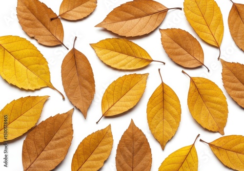 © Habiba, Fototapeta premium Autumn leaves collection flat lay on white background