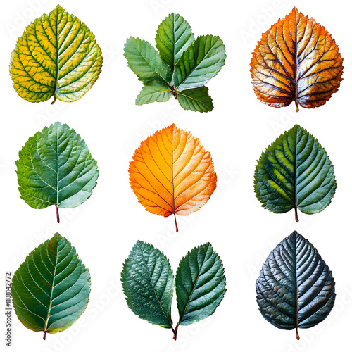 © Suparerk, Obraz premium Autumn Leaves Collection: Green, Yellow, Brown Isolated