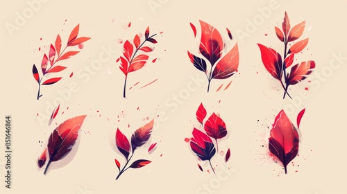© volga, Obraz premium Autumn leaves collection in vibrant watercolor style