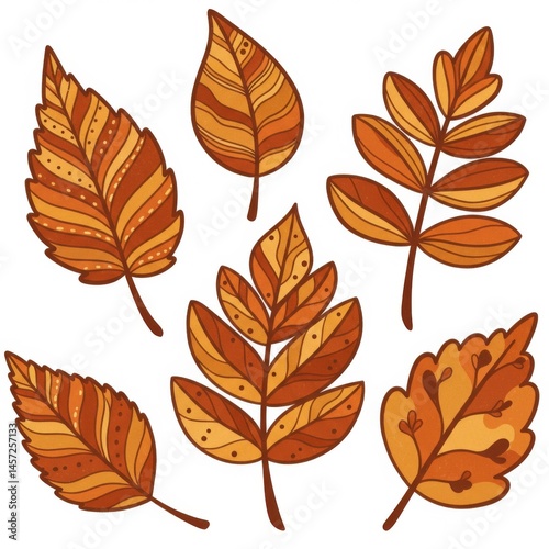 Fototapeta premium Autumn Leaves Collection Orange Brown Fall Foliage Illustration