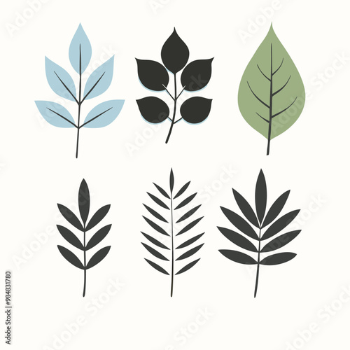 © Swapna graphics, Obraz premium Autumn leaves collection vector silhouette, isolated white background,