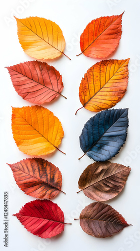 © SemangArt, Fototapeta premium Autumn leaves color gradient, white background, fall design