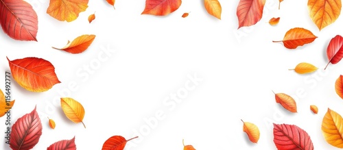 © The 2R Artificiality, Obraz premium Autumn leaves falling gracefully on a white background creating a serene space for seasonal text and design elements.
