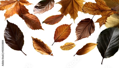 Fototapeta premium Autumn leaves flying and falling isolated on background
