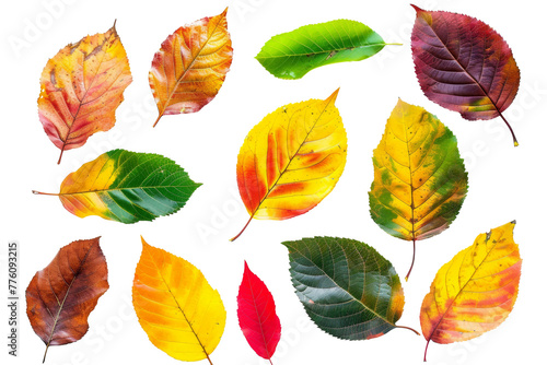 Obraz premium Autumn leaves flying and falling isolated on background, multi color of...