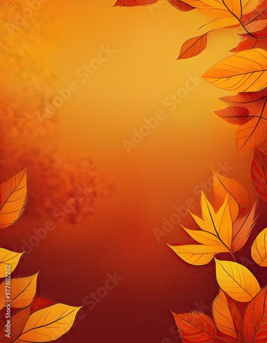 © swan, Fototapeta premium Autumn leaves frame a warm sky