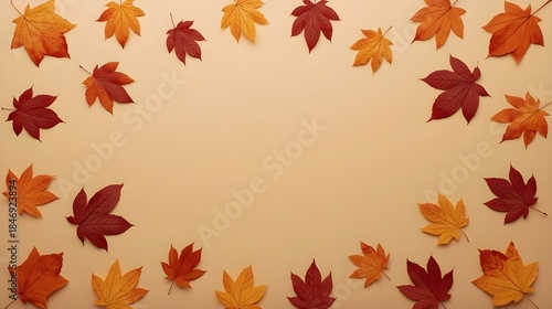© RB Visual Works, Obraz premium Autumn leaves frame background with copy space