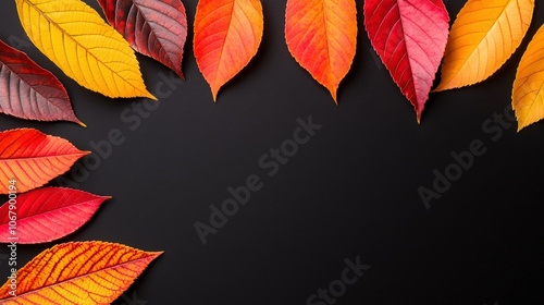 © BOJOShop, Obraz premium Autumn Leaves Frame on Black Background Fall Foliage Design Element