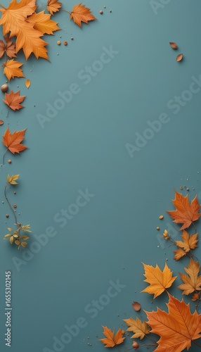 © Thanarach, Obraz premium Autumn Leaves Frame on Neutral Background