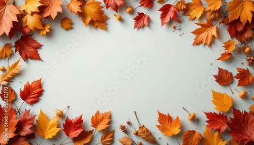 © Thanarach, Obraz premium Autumn Leaves Frame on Neutral Background