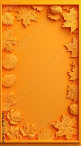© gina collections, Fototapeta premium Autumn leaves frame on orange background (1)