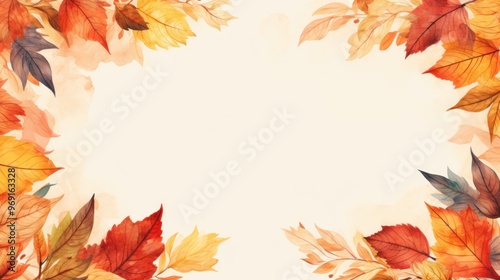 Obraz premium Autumn Leaves Frame on Soft Watercolor Background. Elegant Border Design....