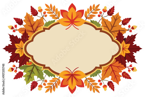 © Design Adelsa, Obraz premium Autumn Leaves Frame with Beige Background