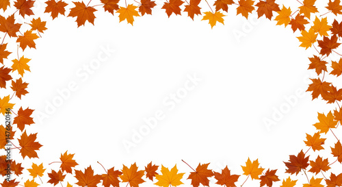© Natthapong, Obraz premium Autumn Leaves Frame with Vibrant Orange and Yellow Colors