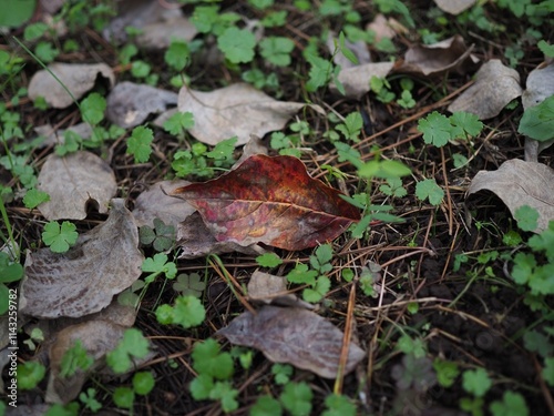 © Naya Jones, Fototapeta premium autumn leaves in the forest