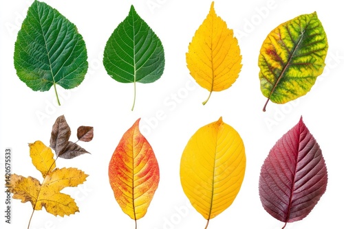 © Dzikrul Husnani, Obraz premium Autumn Leaves in Various Colors on White Background
