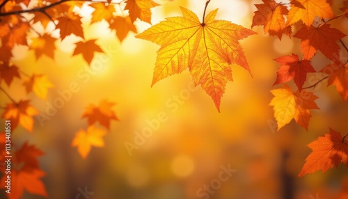© Alvin, Fototapeta premium Autumn leaves in warm orange, yellow, and red tones with gentle sunlight