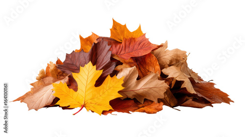 © Oatkhaphon, Obraz premium Autumn leaves isolated on transparent background with warm colors and natural texture