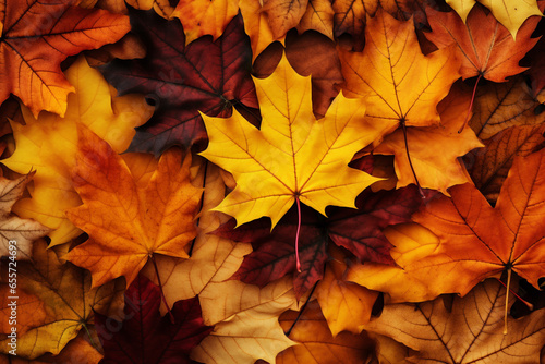 © Pichsakul, Fototapeta premium Autumn leaves lying on the floor