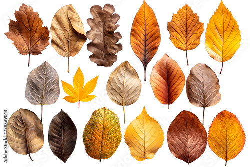Fototapeta premium Autumn leaves of various shapes on a transparent background