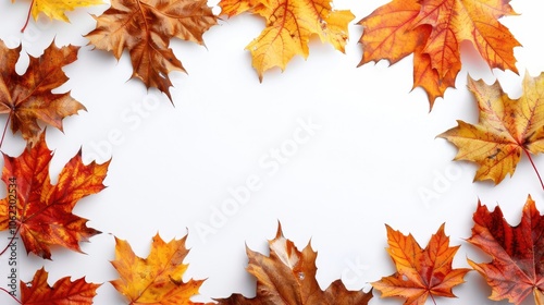 Fototapeta premium Autumn leaves on a blank white background for text.