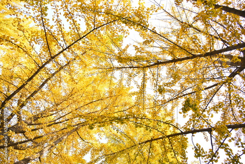 © WENYUE, Fototapeta premium autumn leaves on blue sky