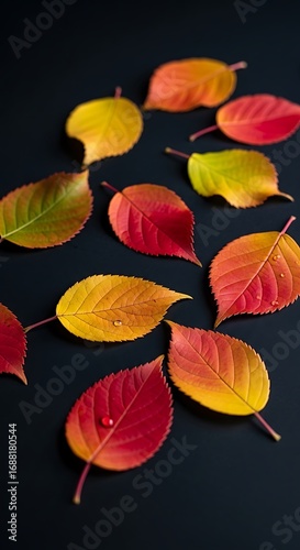 © jiman, Obraz premium Autumn Leaves on Dark Background.