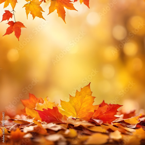 © Marcus, Naklejka premium autumn leaves on the ground and background. soft background.