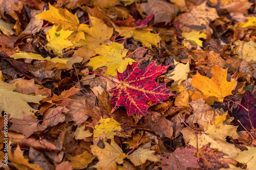 © lunarvogel, Fototapeta premium Autumn leaves on the ground in the forest