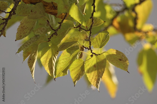 © UMIT, Obraz premium autumn leaves on the tree. Yellow mulberry leaves.