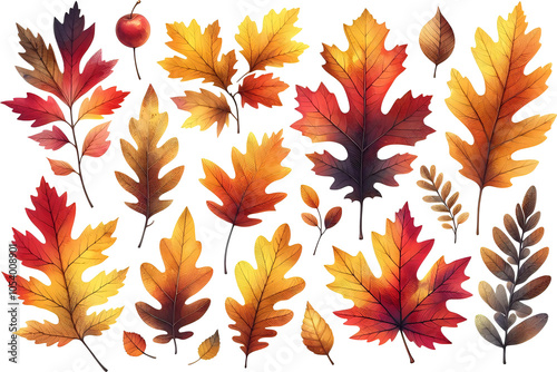 © Art Watercolor, Obraz premium Autumn Leaves on White Background
