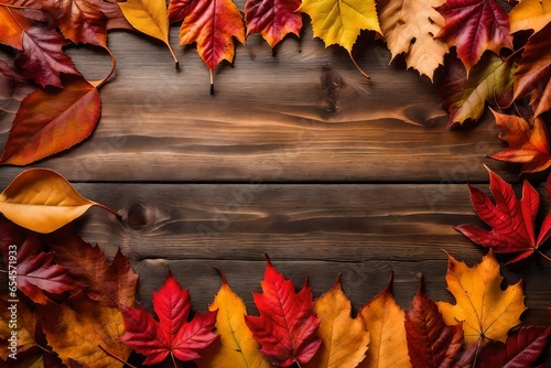 © Ahmad_Art, Obraz premium autumn leaves on wooden background