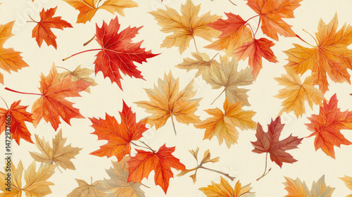 © jogeromonstero, Fototapeta premium Autumn leaves pattern background