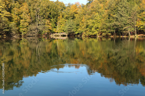 Fototapeta premium autumn leaves reflecting in water