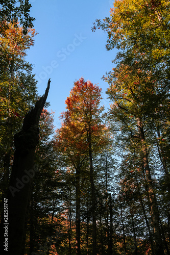 Fototapeta premium autumn leaves reflecting in water