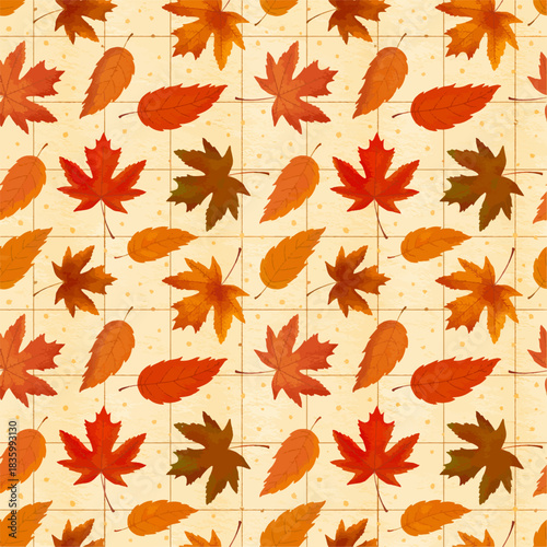 © Hhanaz, Obraz premium Autumn Leaves Seamless Pattern