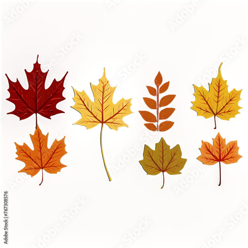 © Azharul, Obraz premium Autumn leaves set. Generative AI