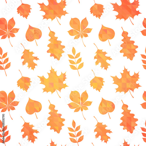 Fototapeta premium Autumn leaves silhouettes colorful seamless pattern