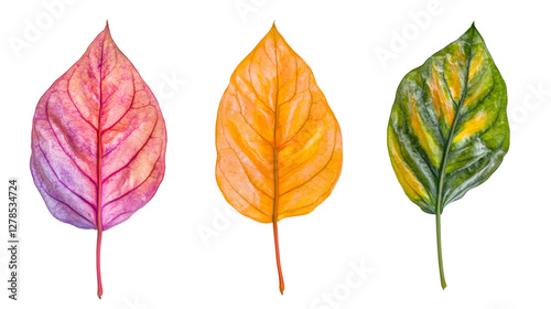 Fototapeta premium Autumn leaves transitioning, vibrant colors blending against transparent backdrop