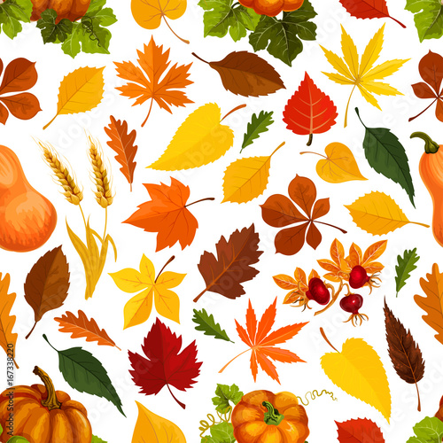 Obraz premium Autumn leaves vector seamless pattern