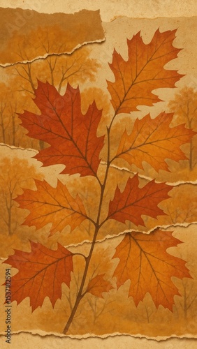 © Rawpixel.com, Fototapeta premium Autumn leaves vintage illustration
