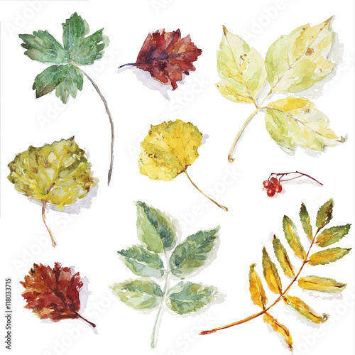 © anamuana, Fototapeta premium Autumn leaves watercolor