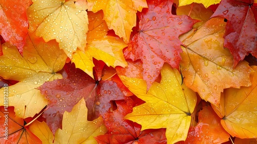 © Ruslan, Fototapeta premium Autumn leaves with raindrops up close in Melbourne, Australia.