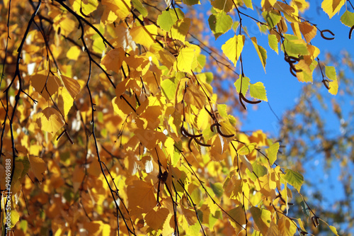 Fototapeta premium Autumn leaves with the blue sky background