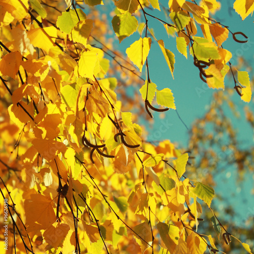 Fototapeta premium Autumn leaves with the blue sky background