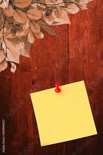 © vectorfusionart, Fototapeta premium Autumn leaves with yellow note