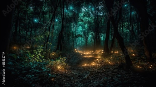 © neirfy, Obraz premium Autumn magical forest background with gigantic moon and mystic lights
