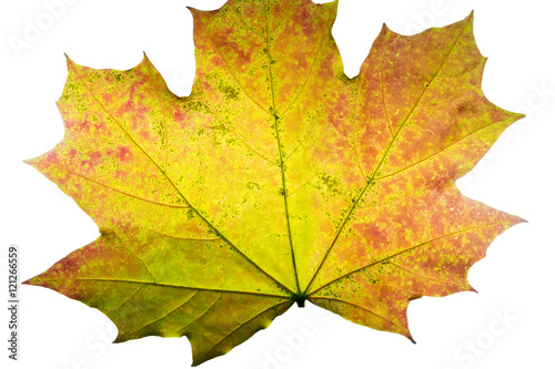 © sergofan2015, Obraz premium autumn maple leaf isolated on white background