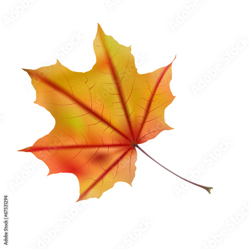 © serg_dibrova, Obraz premium Autumn maple leaf on white, detailed and textured.