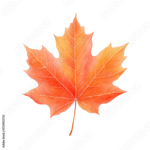 Fototapeta premium Autumn maple leaf orange red fall foliage isolated transparency background botanical natural seasonal detailed
